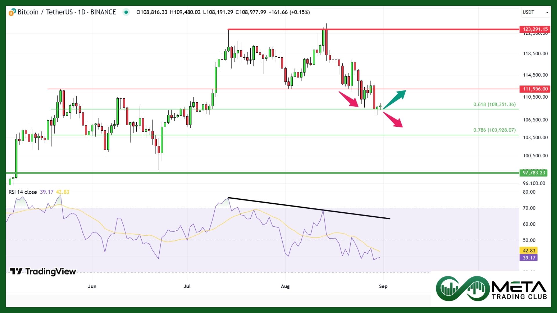 Technically, BTC has slipped below the key $111K resistance and is now hovering near $108K. If the $107K–$108K support zone fails to hold, a deeper drop toward $103K is likely.