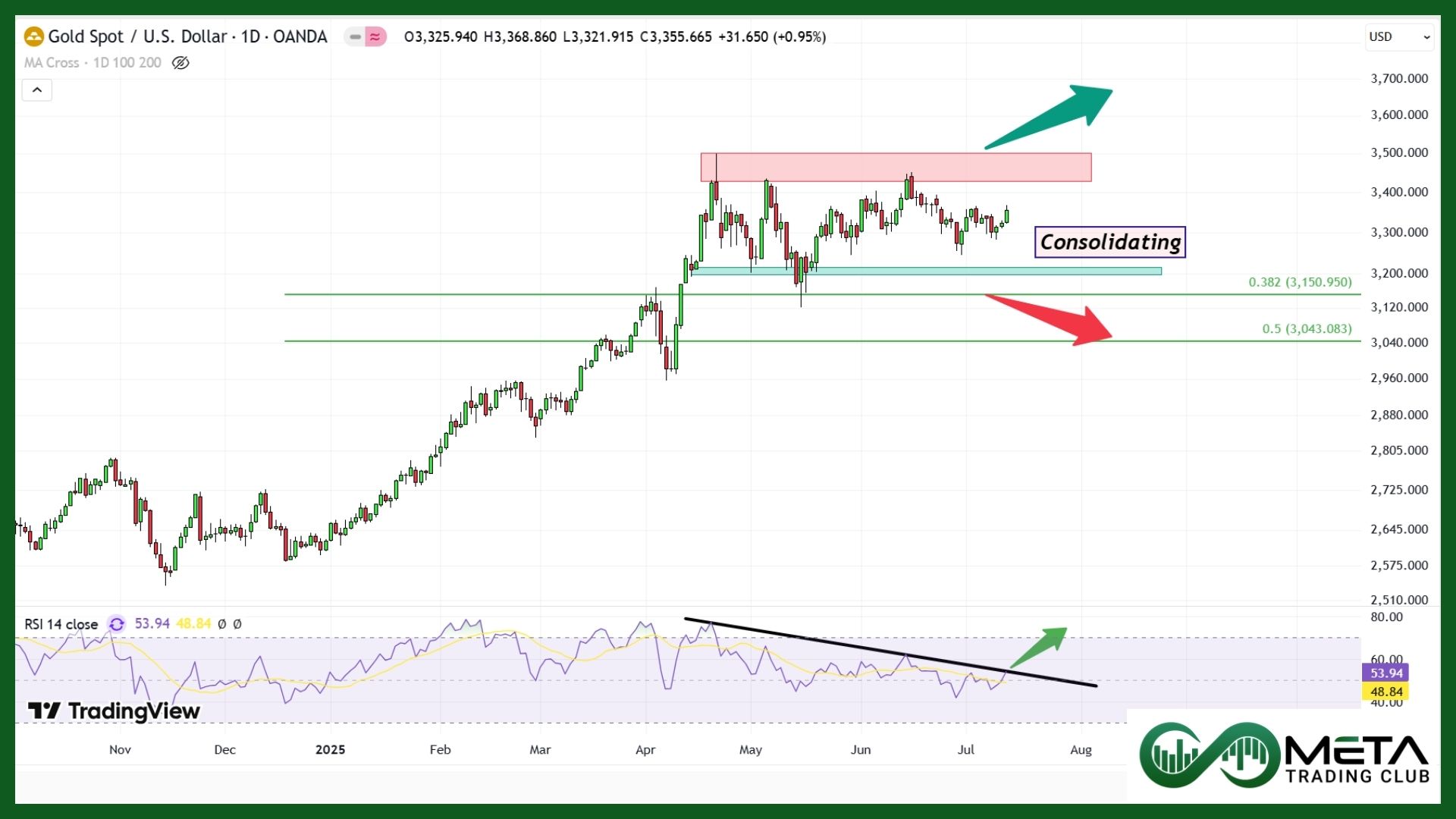 Technically, Gold has been trading in a tight range over the past few weeks. To resume a bullish trend, it needs to break above its all-time high. An early bullish signal may start by breaking RSI down trend momentum line, which could lead gold to ATH resistance. On the downside, a drop below the $3,150 support zone could signal further declines.