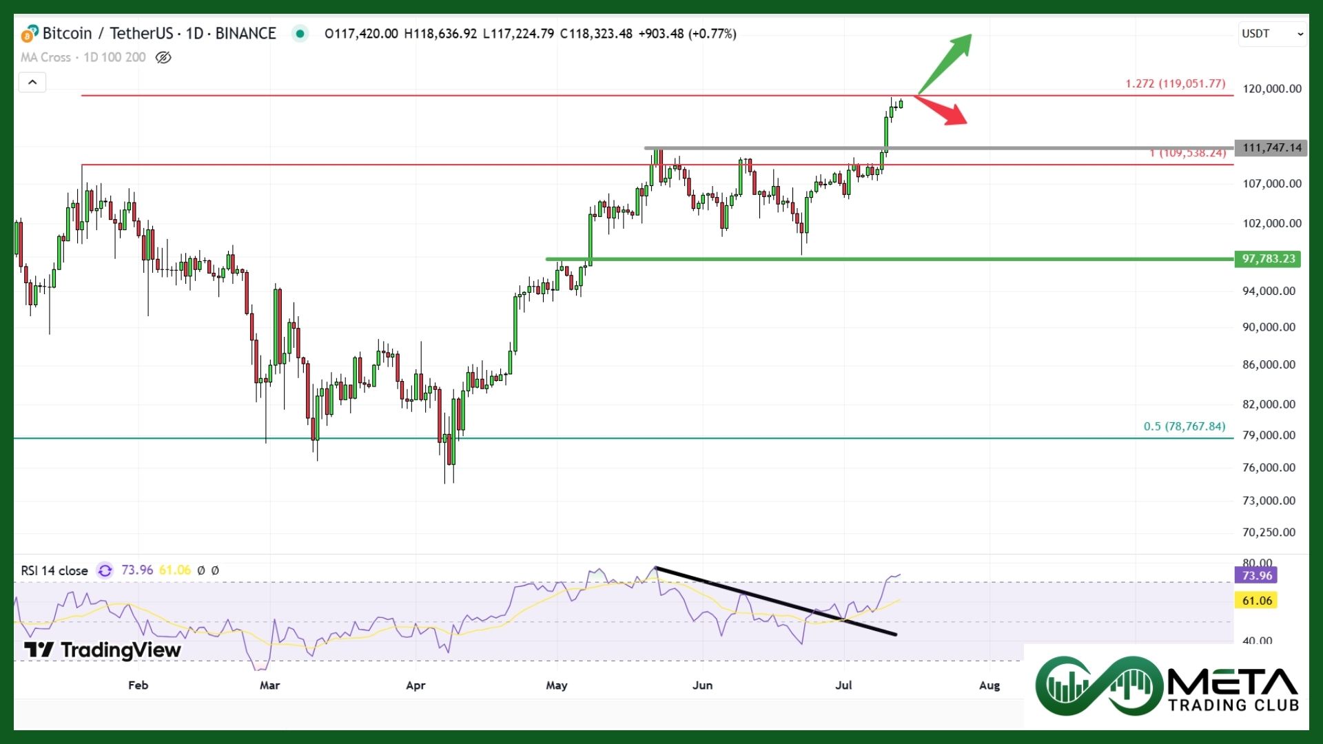 Technically, Bitcoin continues to trade in a bullish zone as long as it stays above $112,000, keeping upward momentum intact. However, if it slips below $109,000, that could signal a breakdown and raise near-term risks for investors. On the flip side, a solid move above $118,000 may trigger another surge toward the key $120,000 psychological level and also a Fibonacci resistance zone.