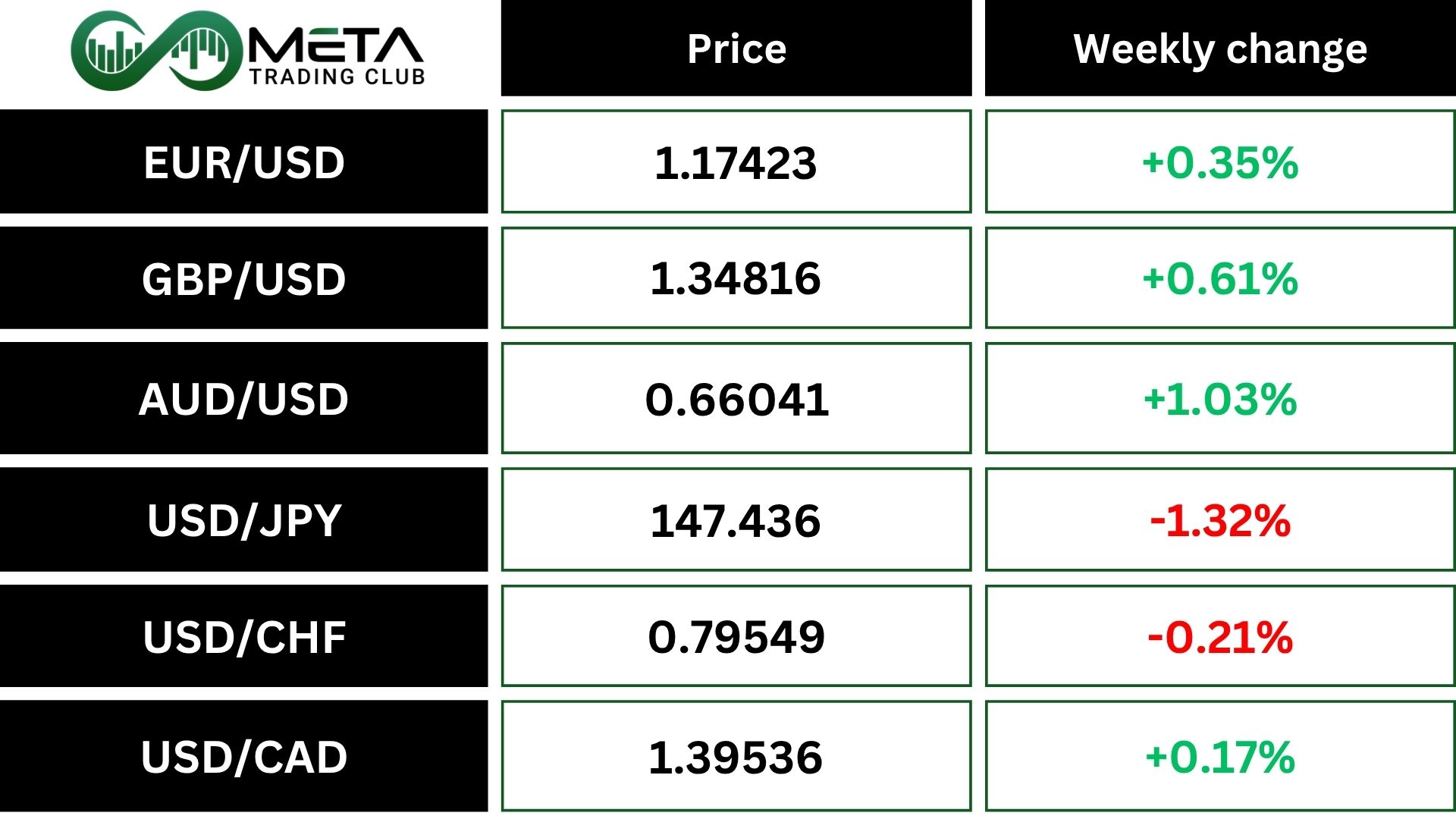 Weekly Performance of Major Foreign Exchange Pairs: