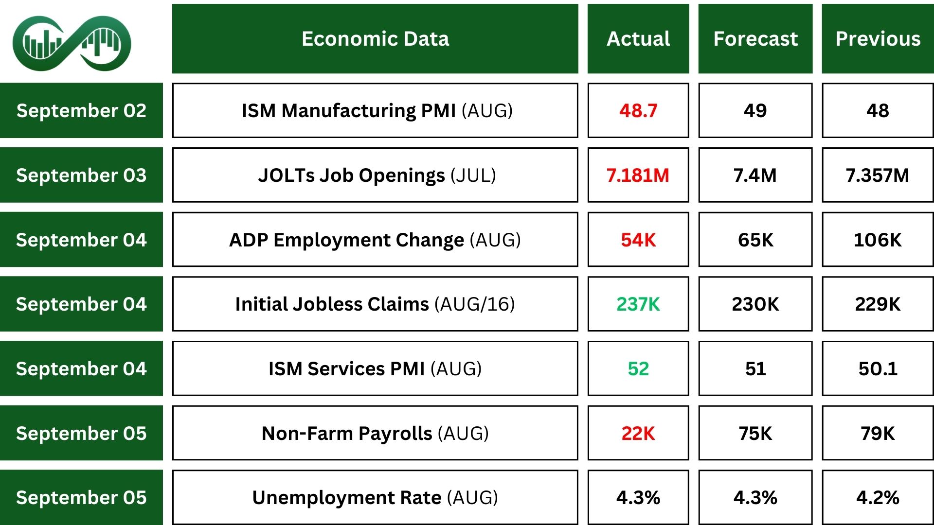 The U.S. unemployment rate rose to 4.3% in August 2025, its highest level since late 2021, matching market expectations. The number of unemployed people grew by 148,000 to 7.38 million. At the same time, the overall labor force slightly expanded, pushing the participation rate up to 62.3% from a two-year low.