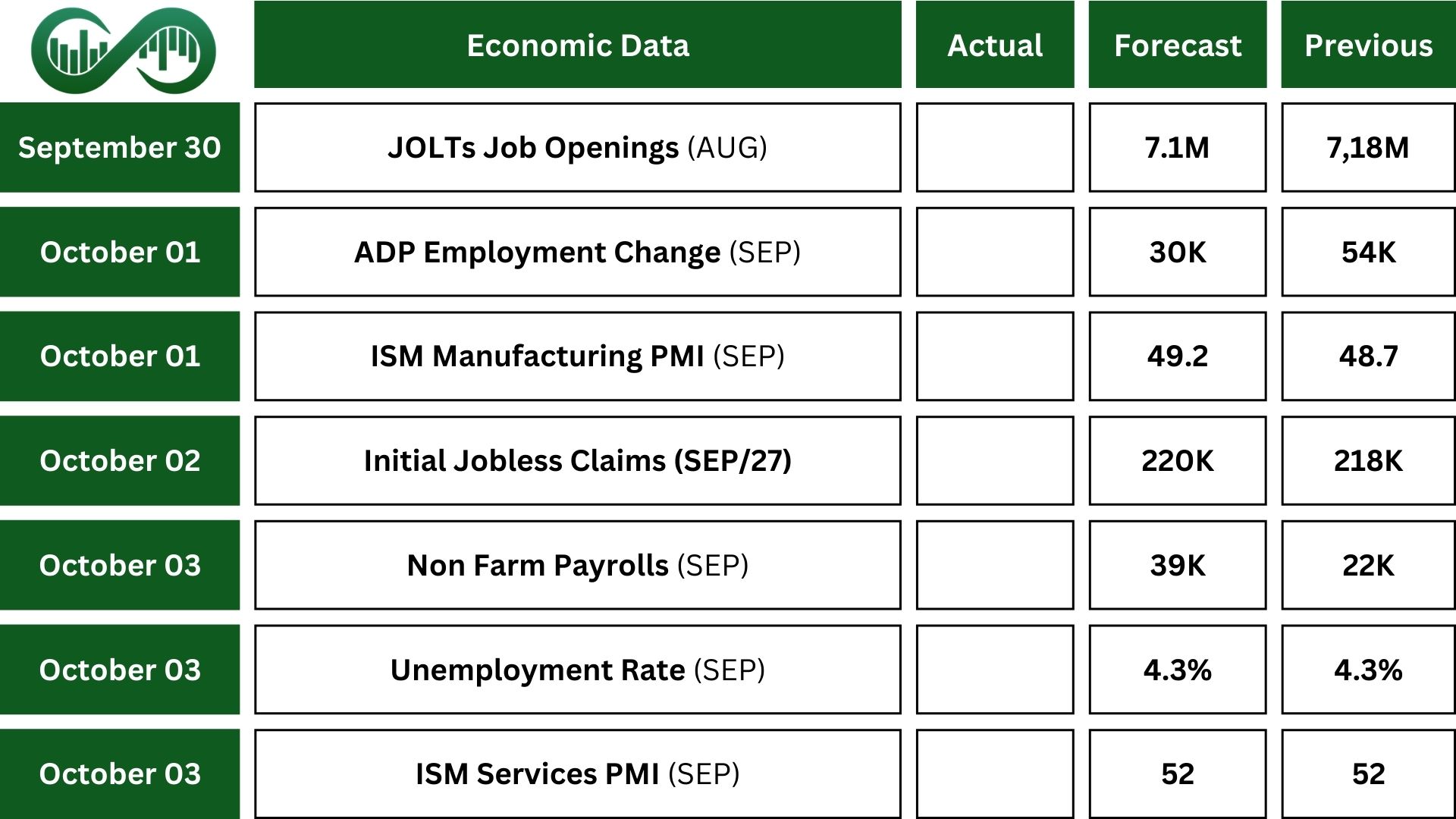 September Non-Farm Payrolls are expected to rise by 39,000, an improvement from August’s 22,000, but still below earlier levels this year.