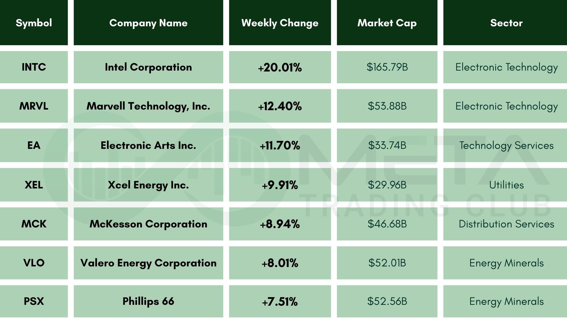 Last week saw a remarkable stock market performance, with several companies standing out as top gainers: